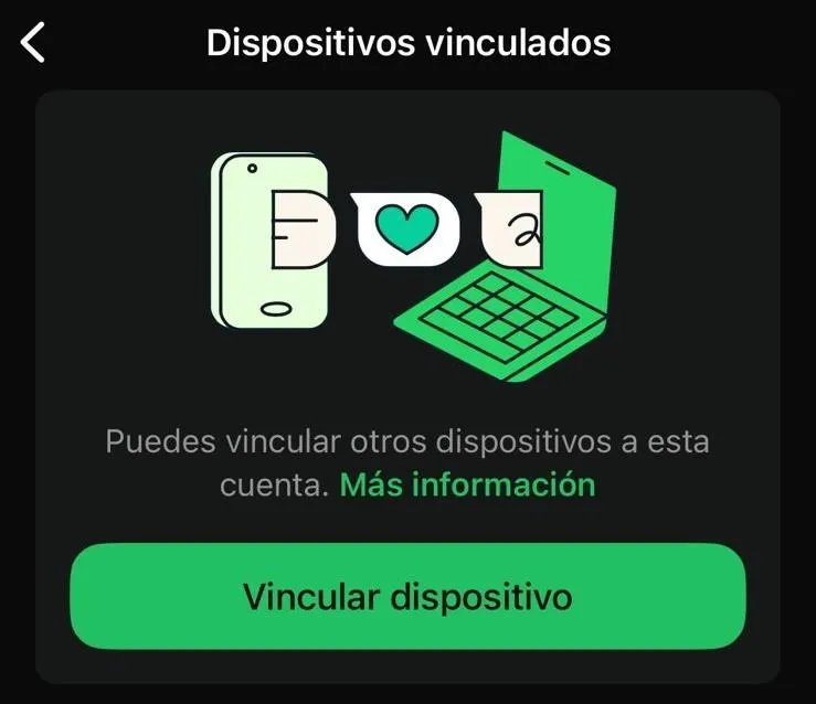 En WhatsApp, ve a Dispositivos vinculados > Vincular dispositivo.