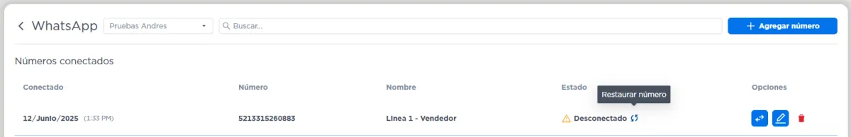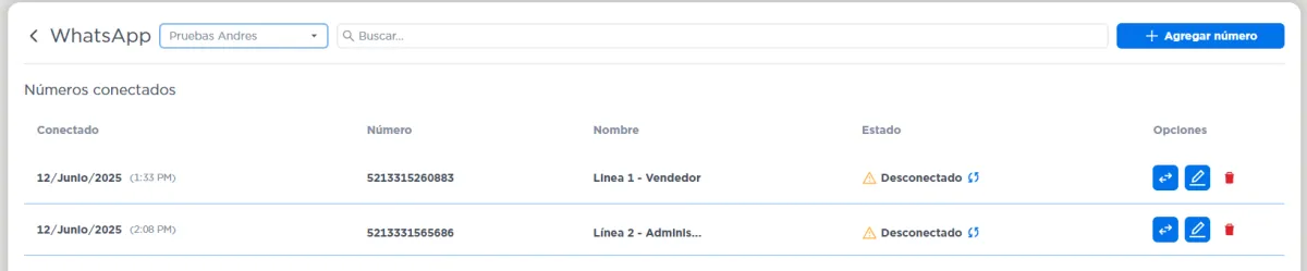 Elige la línea de WhatsApp conectada.