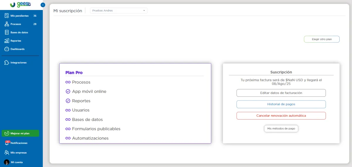 En la sección Mejorar mi plan, puedes ver: