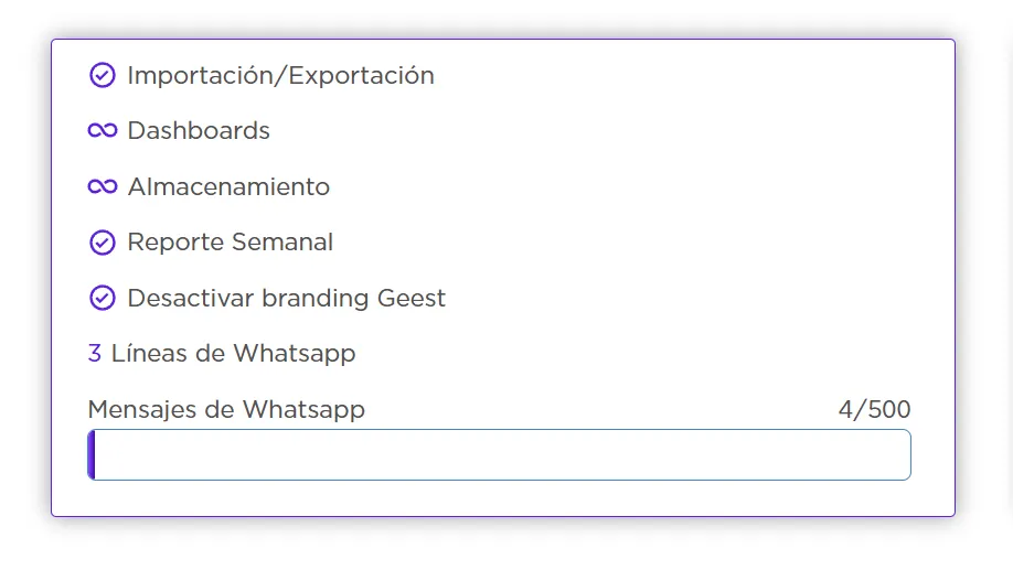 Cada mensaje o archivo cuenta como 1 mensaje (Ej. texto + PDF = 2).