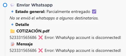 Verás si el mensaje fue enviado exitosamente o si hubo error (por desconexión de línea).
