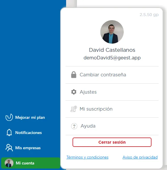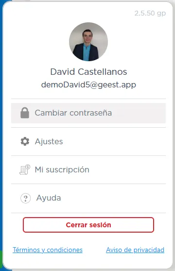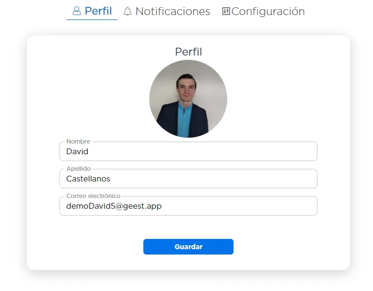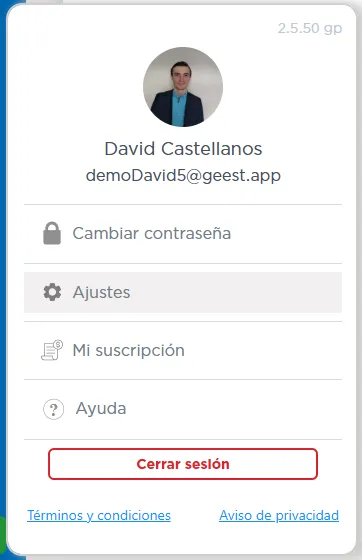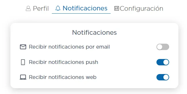 Modifica tu nombre, contraseña, solicita ayuda y elige cómo deseas recibir notificaciones (push, web o email).