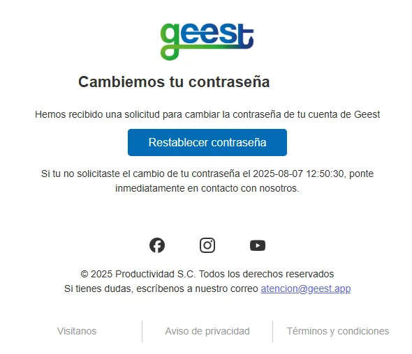 Revisa tu correo electrónico. Recibirás un enlace para restablecer tu contraseña.