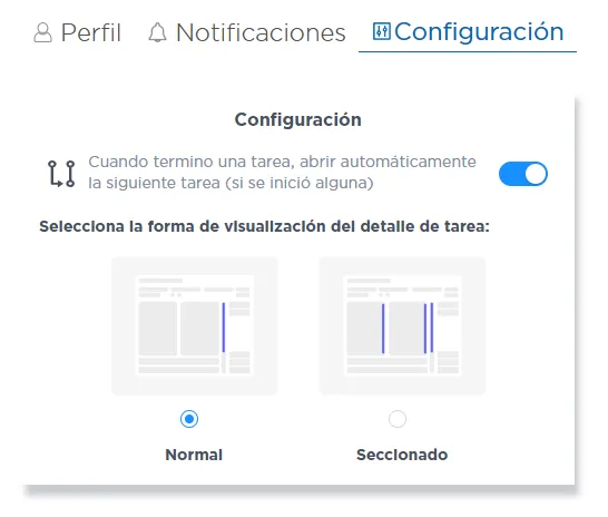 Activar/desactivar la opción Abrir automáticamente la siguiente tarea al terminarla.