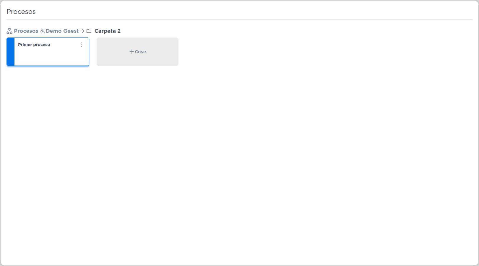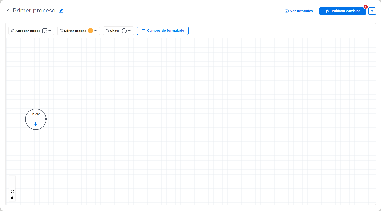 En su estado inicial (como en la primera imagen), se muestra un botón para crear un nuevo proceso, útil para quienes están empezando a construir su sistema.