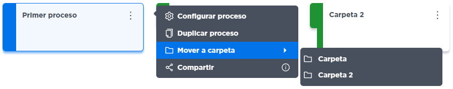 Para mover tus procesos dentro de una carpeta debemos seguir una serie de pasos: