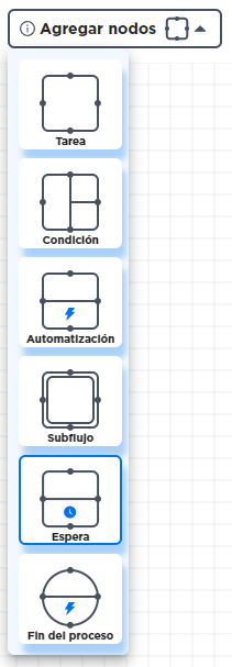 En esta sección seleccionamos los nodos que necesitemos agregar a nuestro proceso.