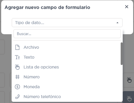 Justo como en el campo Lista de opciones, este tipo de dato incluye un botón desplegable que te permite decidir si los usuarios pueden escribir nuevas opciones durante el uso del campo.