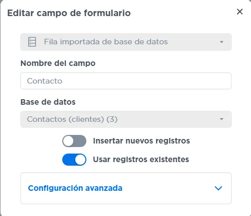 Cuando eliges este tipo de campo, puedes acceder a una configuración avanzada que te permite definir con precisión cómo funcionará esta columna. A continuación se explican todas las opciones disponibles: