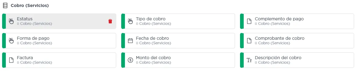 Si quieres borrar algo, solamente que sea de los campos No vinculados a Base de Datos, si quieres borrar algún campo de un grupo de color, debes de ir a la BD correspondiente, buscar la columna que quieres borrar y eliminarla, porque si dentro del flujo eliminas un campo de grupo de color, todos los campos relacionados a ese color también se eliminarán de todas las tareas de tu proceso.